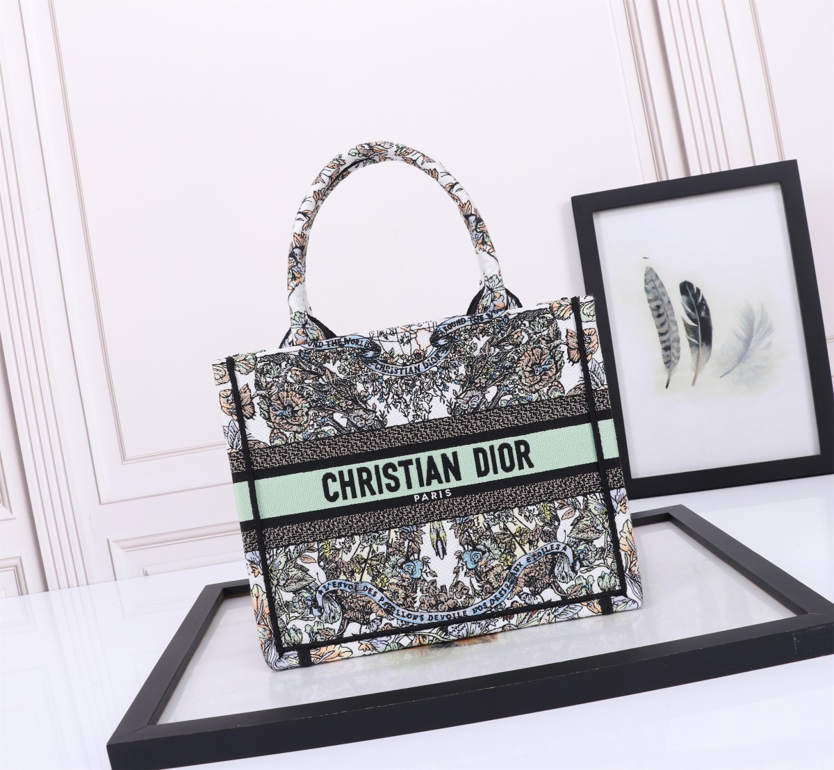 Small D*0r BOOK TOTE WHITE MULTICOLOR TOILE DE JOUY MEXICO EMBROIDERY 10.5 x 8.5 x 5.5 inches
