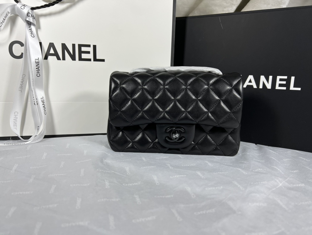 Ch*el Classic Handbag in Grained Litchi Pattern Calfskin & Gold-Tone Metal 6 × 9.9 × 2.5 inches